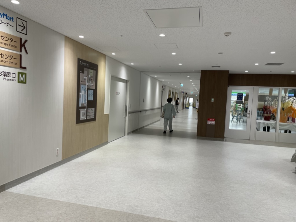 おはようございます。昨日は、今年1月に新病院が完成した大阪労災病院にオープンしてから初めて行ってきました。病院の2階部分の一部を撮影。昨年訪問してお話を伺った相談員のHさんが勤務している治療就労両立支援センターのコーナーの前も通りました。心房細動のアブレーション治療でお世話になった循環器内科の江神先生の診察を受けてきました。3年半ほどになりますが、洞調律に戻り、心エコー心電図やBNPも良好です。